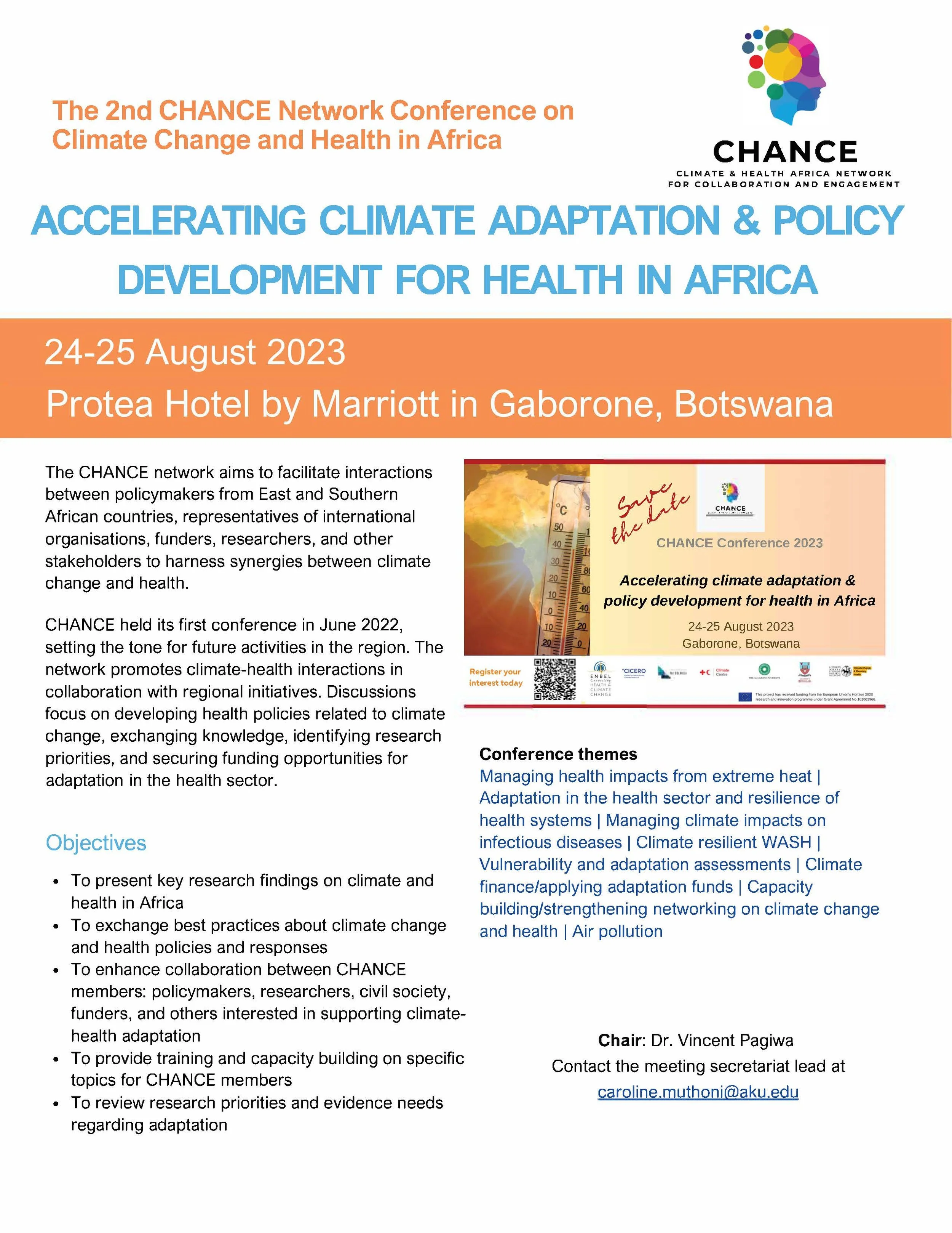 2nd CHANCE conference on Accelerating Climate Adaptation & Policy Development for Health in Africa to take place in Botswana 24-25 August